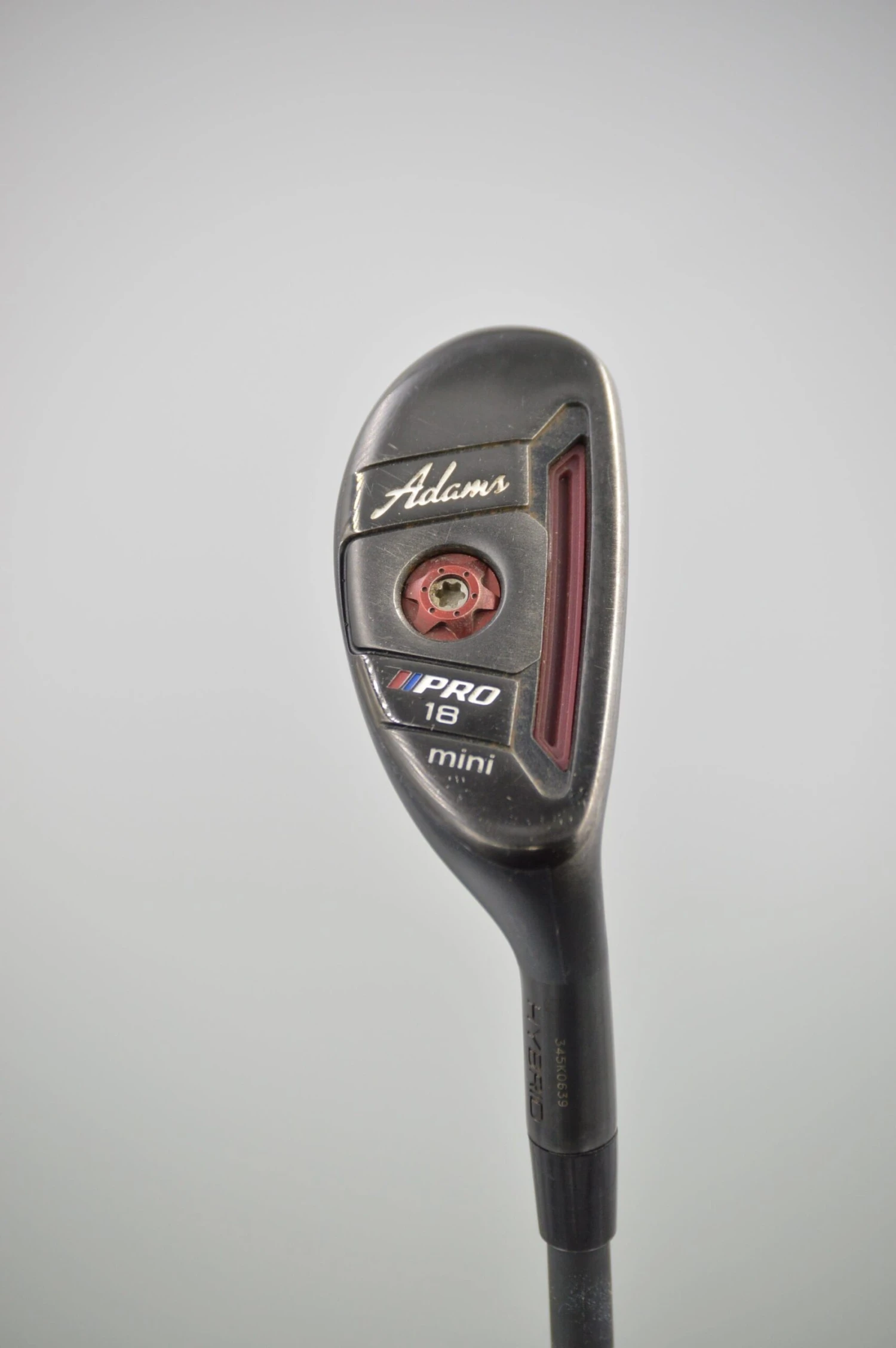 Hybrid is in fair condition, with some wear to the head and face. Loft is 18 degrees. Shaft is Aldila Tour in S Flex with a Golf Pride Tour Velvet Midsize Grip.