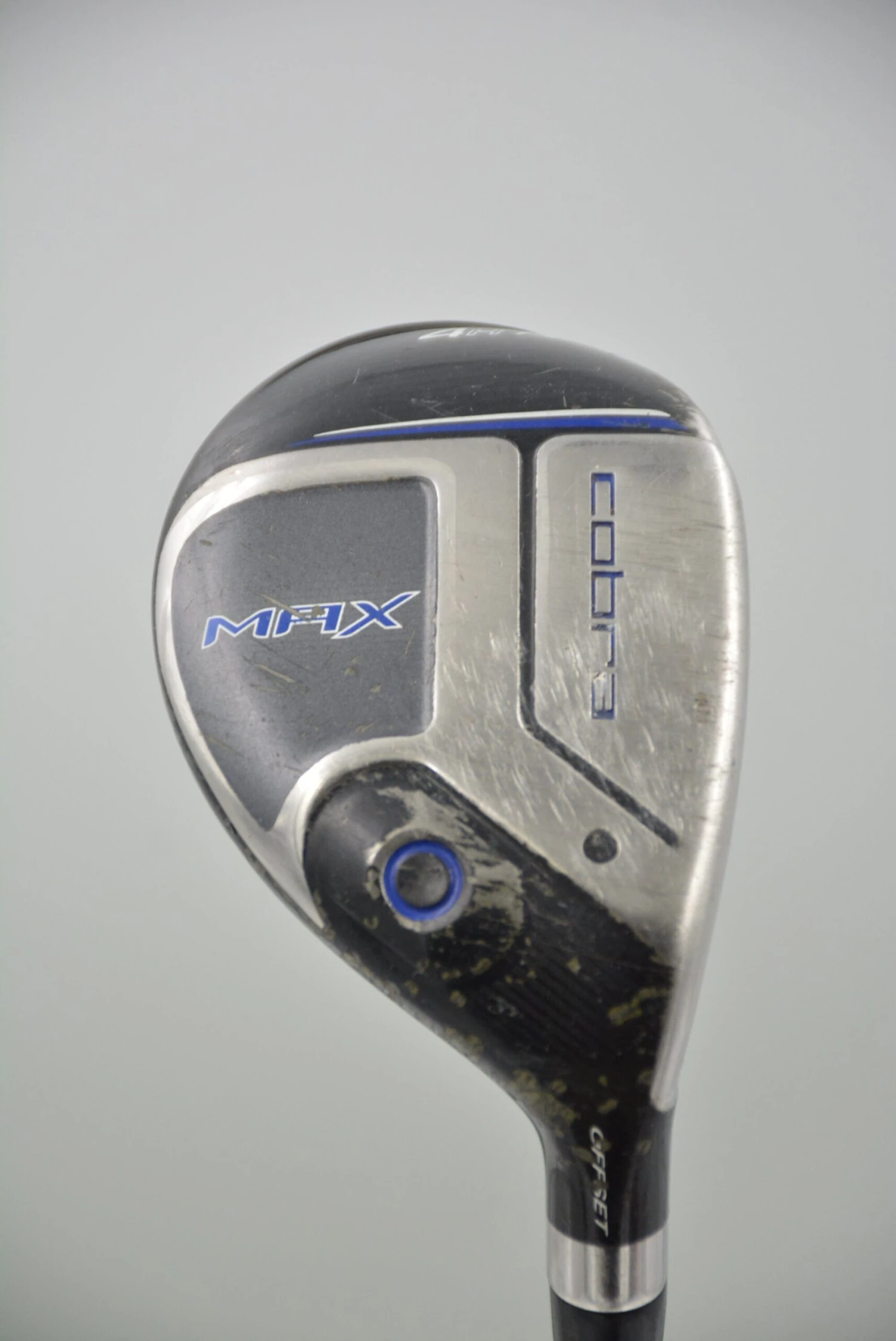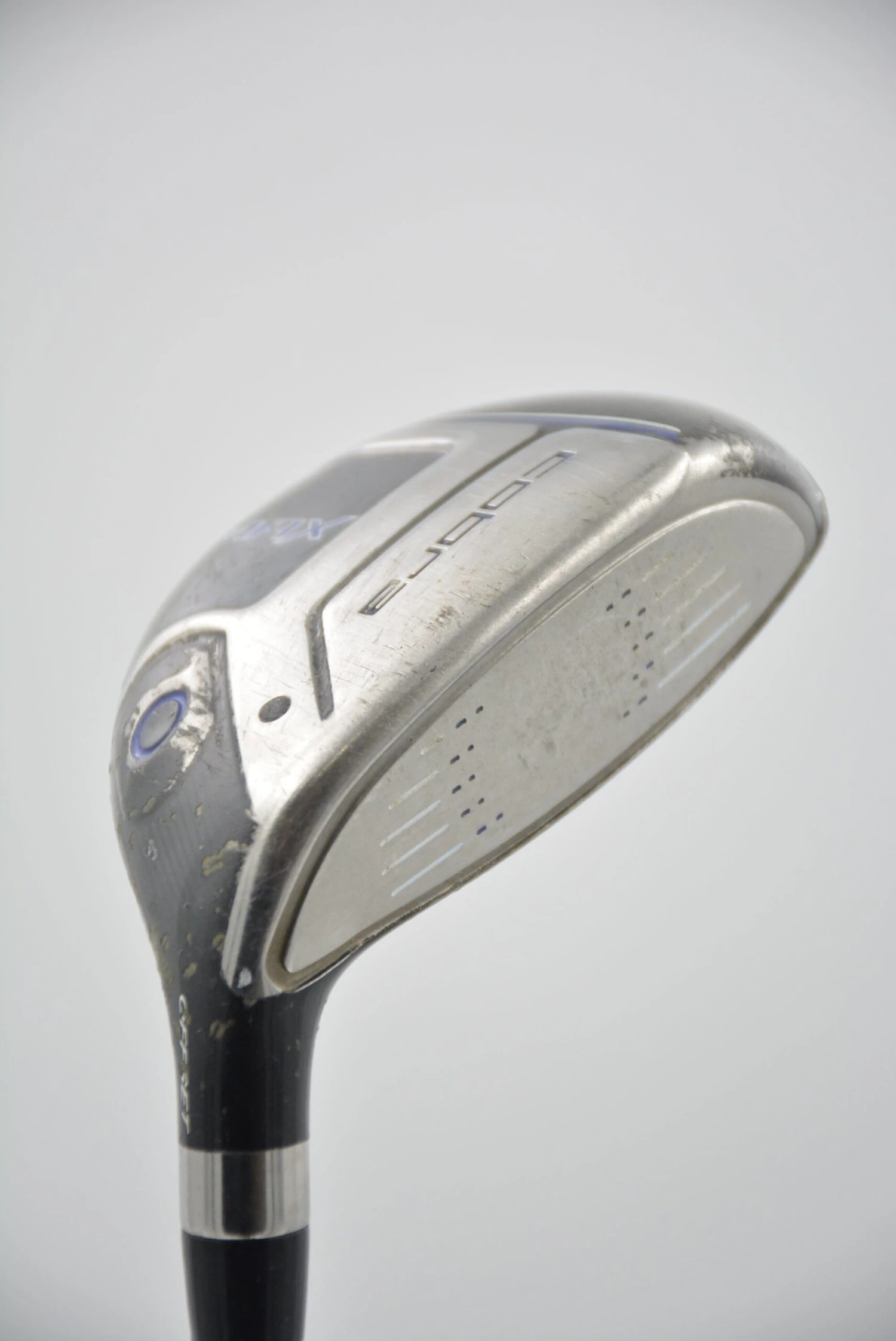 Hybrid is in fair condition (heavy cosmetic wear, but playable condition). Shaft is Matrix Cobra Max White Tie X4 58g in R Flex with a Golf Pride New Decade Multicompound grip.