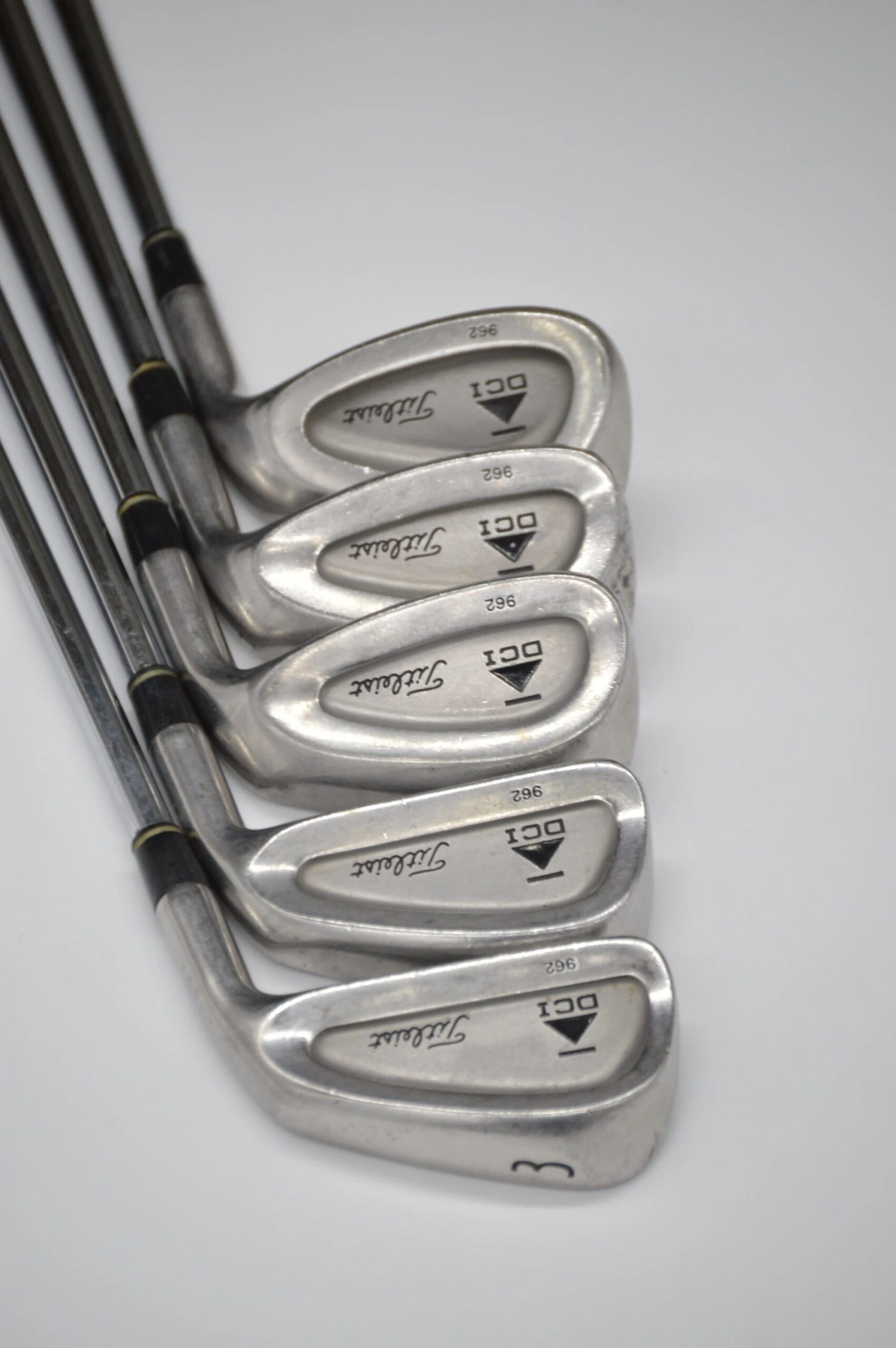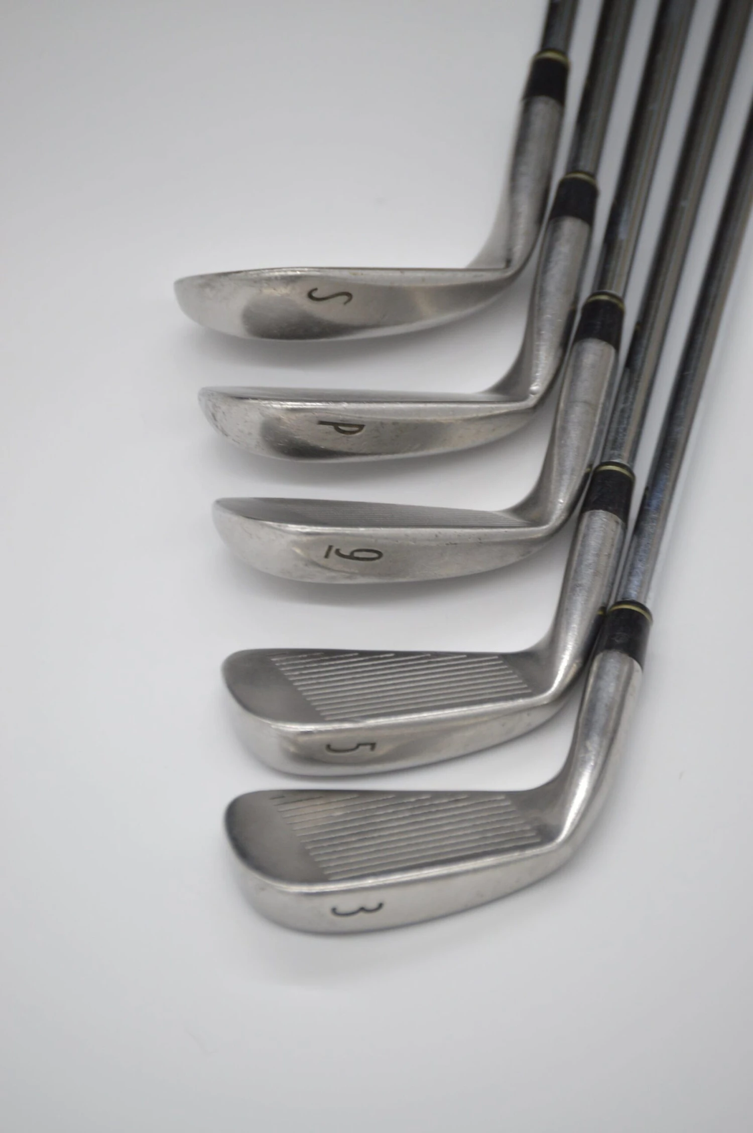 Iron set includes 3, 5, 9, PW, SW. Irons are in good condition with normal wear to the head and faces. Shafts are Precision Rifle FCM in S Flex with Golf Pride Tour Velvet grips.